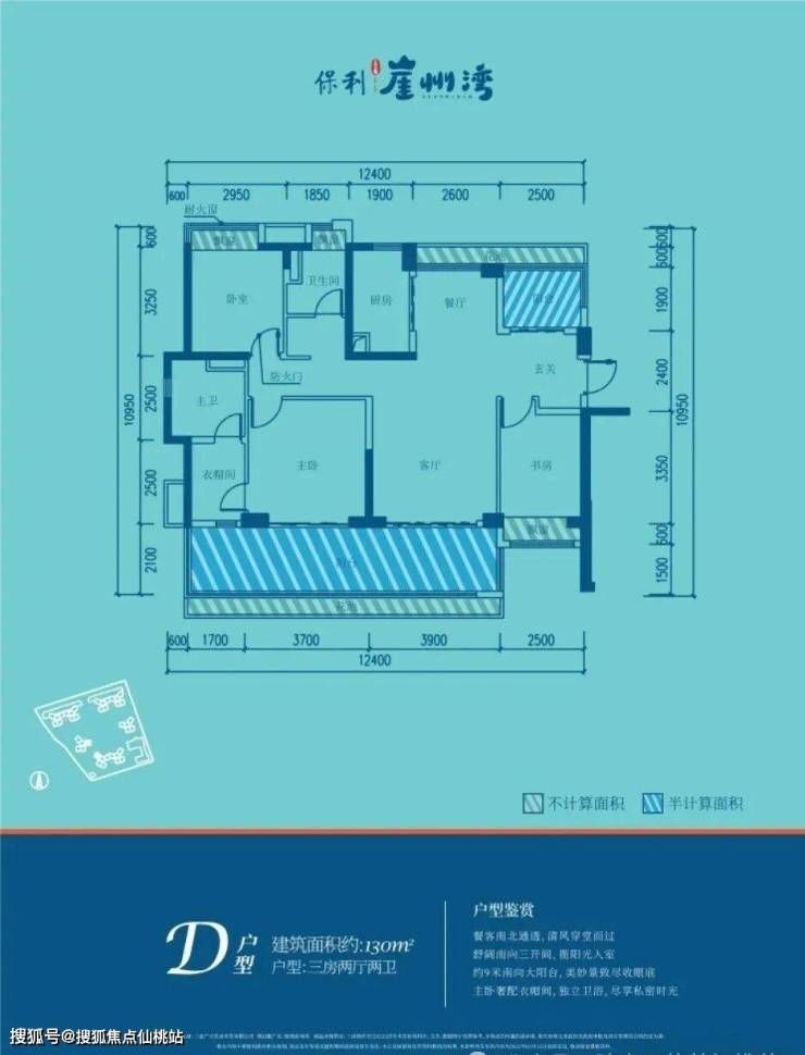 🏖D户型130㎡三房两厅两卫