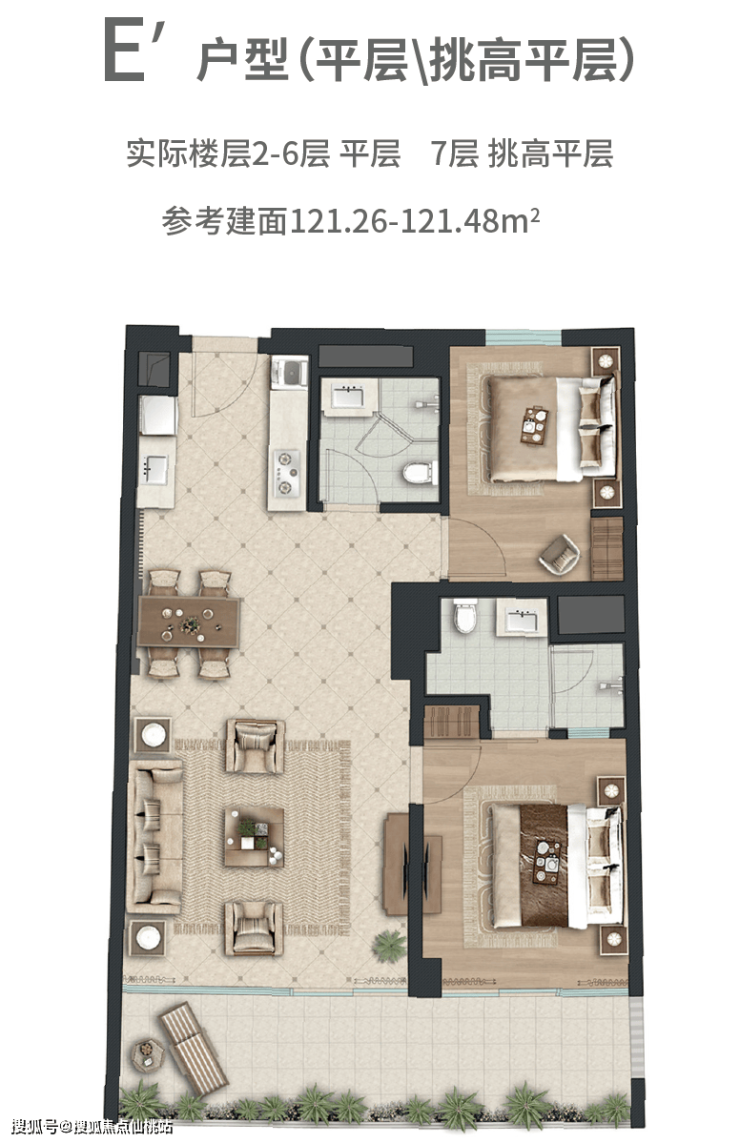 楼层分布:7层以上层层退台,总层高10层