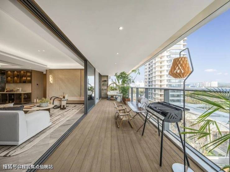 约15米IMAX级宽幕阳台,纵享无界视野。既是款待宾朋的社交主场,亦是全家私藏日出的“自然取景框”。晨光中的手冲咖啡,暮色里的亲子共读,皆于此方天地悠然上演。