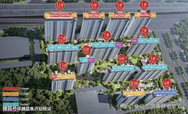 1#楼、5#楼、6#楼、11#楼为27层高层,包含106、129㎡户型;2#楼、3#楼、4#楼、7#楼、8#楼、9#楼、10#楼、12#楼、13#楼为17层-18层小高层,包含106、129、143、176㎡户型。