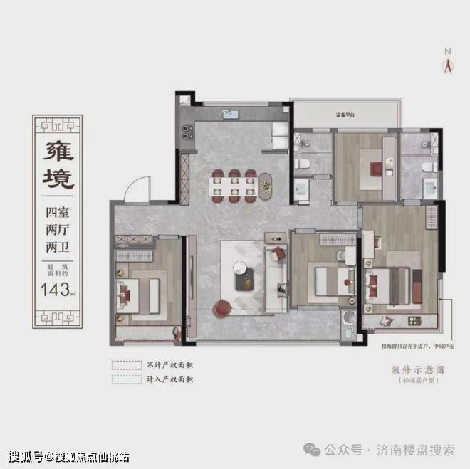 12#为18层小高层,精装,2个单元,两梯两户,户型为143㎡,公摊20%。
