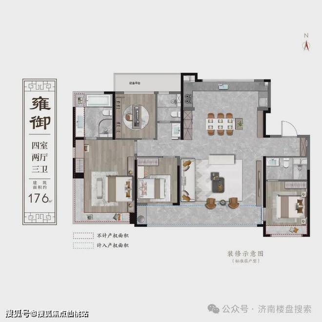 7#为17层小高层,精装,2个单元,两梯两户,户型为143㎡(东单元、西单元东户)、176㎡(西单元西户),公摊20%。
