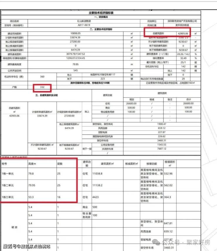项目1栋1/2单元2梯6户,1栋3单元2梯4户设计,地下室有1层,规划360个车位,车位比1:1.08。