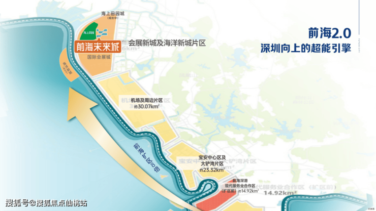 前海8倍扩容,宝安形成“南宝中、北会展”双中心发展格局。从前海1.0(妈湾、前湾、桂湾片区)到前海2.0(会展海洋城),多重战略加持下,成为深圳向上发展的核心引擎。