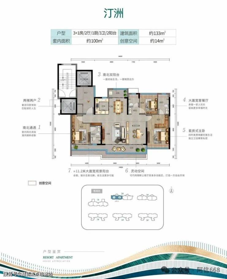 【首推产品】:建面约105-133㎡纯板式花园小高层