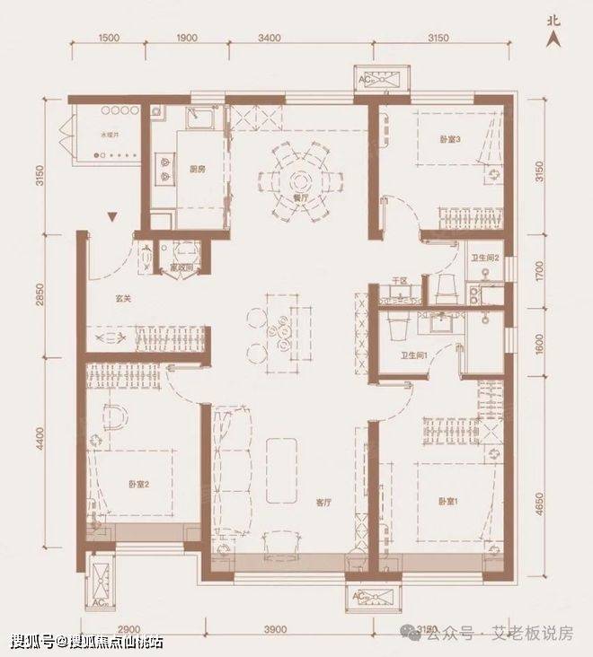 优点:小户型做到了三房两卫,能够压缩总价;