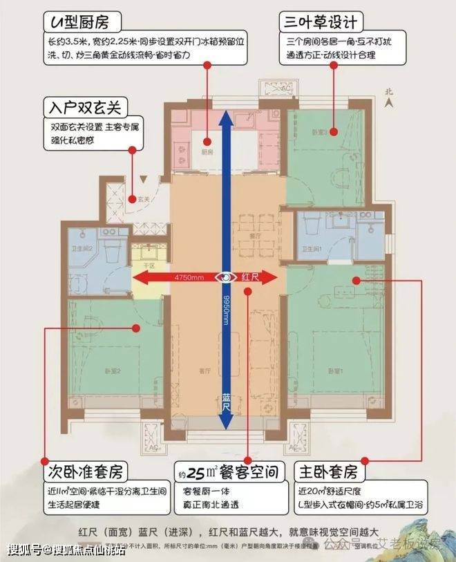 优点:流行的三叶草户型设计,空间利用率高;并且打造了双玄关设计,增加储物功能。