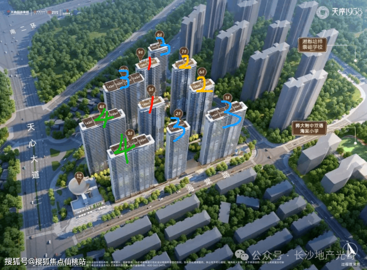 楼栋选择:远离西侧天心大道的楼栋!优先选中间挨着核心景观的楼栋,噪音影响最小(推荐顺序:中间 1 > 东侧 2 > 南侧 + 北侧 3 > 西侧 4)