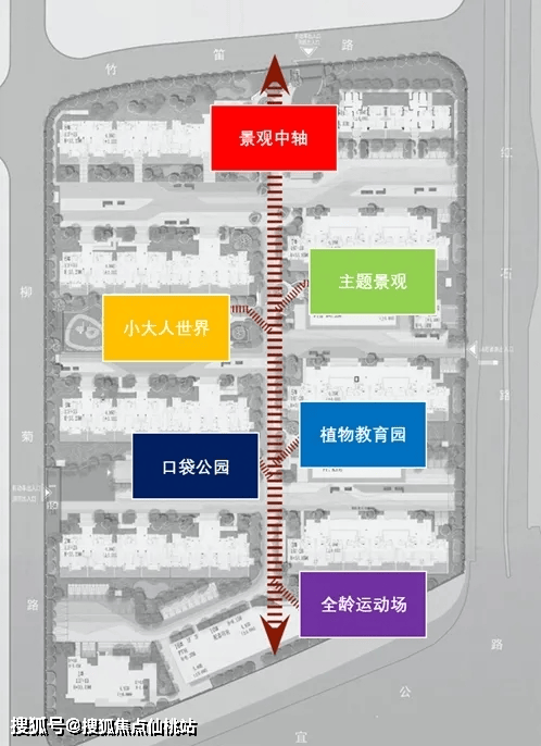 一条景观中轴,营造艺术归家之路【约150m中轴主干道】是艺术归家之路,也是慢跑健身之路,南北贯通整个社区,串联五大主题园林,层层进阶步步生景。