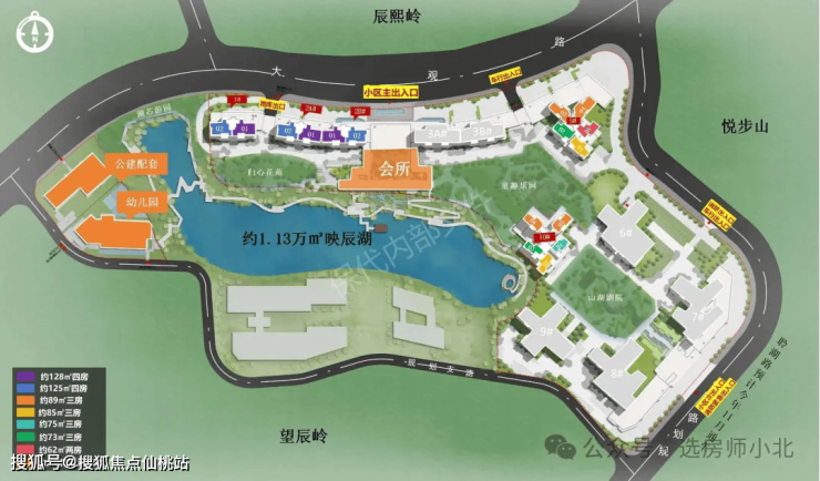 总栋数:9栋(6栋塔楼,3栋板楼)映辰湖约1.75万㎡环湖带;