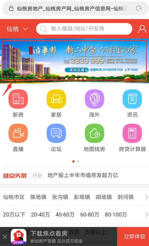 2018年8月19日,仙桃搜狐首次直播沔阳·清华园,直播从早上10:00开始,到11:40结束,在线观看人数有125968人,平台主要通过搜狐网PC端、搜狐网WAP端、搜狐焦点PC端、搜狐焦点WAP端和搜狐焦点看房APP五大平台向全国各地的仙桃人进行全网直播。