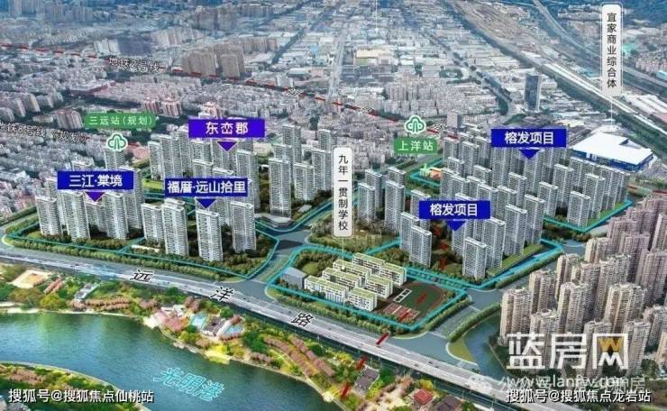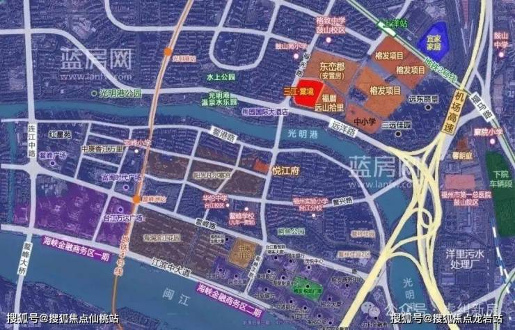 新投三江棠境南侧是光明港及光明港公园,部分楼栋具有良好的面河景观,周边生活配套有宜家商业综合体、光明港温泉水乐园(在建)、格致中学鼓山校区、鼓山苑小学、市一医院鼓山院区(规划)等。此外三远片区内还规划商业、九年一贯制中小学及2所12班幼儿园。