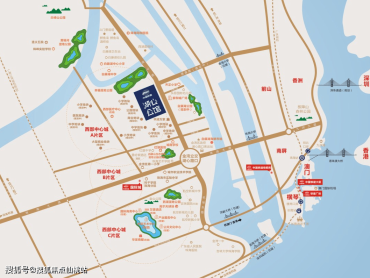『区域』珠海西部中心城 城市副中心中国铁建与珠海政府签订西部城区A、B片区合作开发,中国铁建实力央企携手珠海缔造西部新城。西部A、B片区共计15300亩土地,相当于2.7倍的航空新城,未来升值潜力无限。