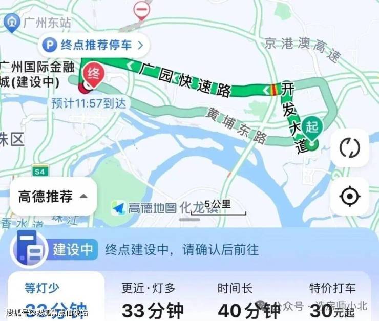 到金融城:走开发大道转广园快速,或者走黄埔大道去金融城,约20来公里,不堵车情况下,耗时33分钟左右。