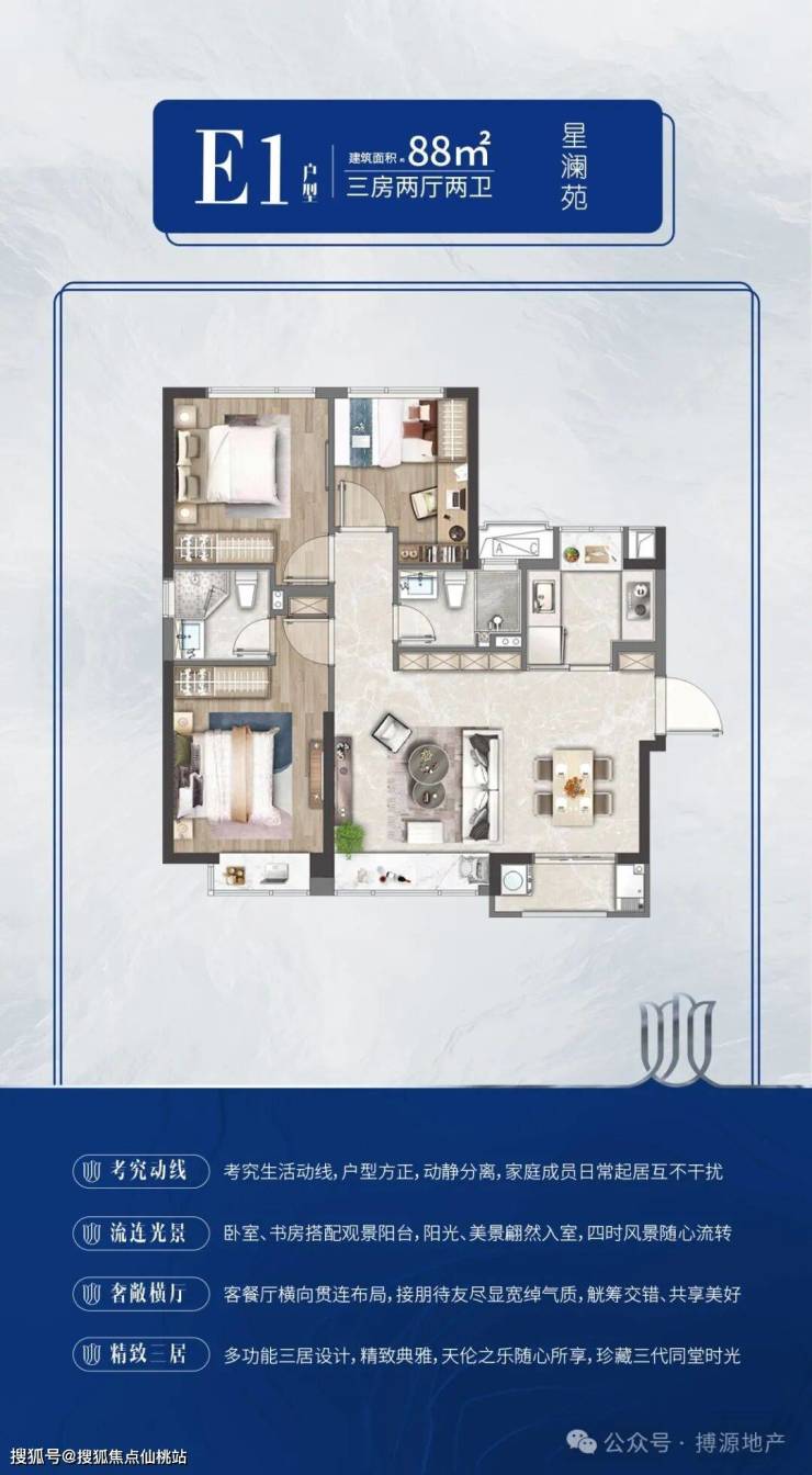 星辰境苑,作为全盘首发之作,以出于理想居住的规划设计,让渡于自然生态,人与自然无限亲近。建面约88-119m2景致雅居,户型方正通透;餐客厅一线相连,布局动线合理舒宜,让每个人都能在此寻得生活心仪的模样。