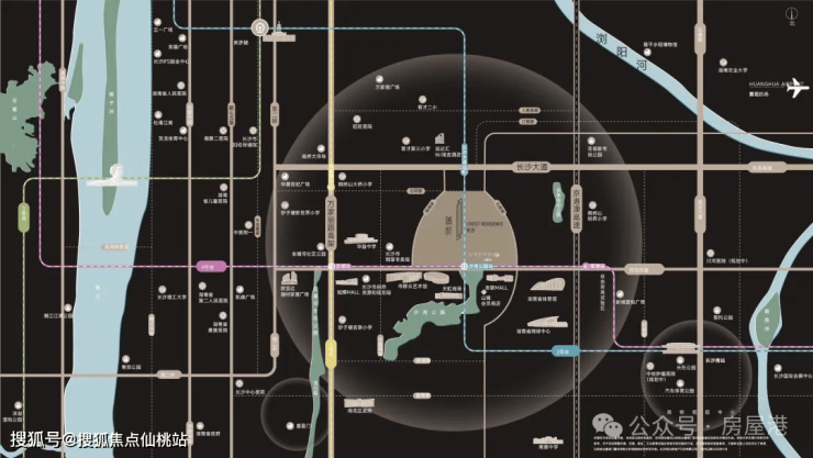 项目位于雨花区劳动东路与沙湾路交汇处,出小区便是地铁2号线和4号线换乘站沙湾公园站,街对面便是沙湾公园,一路之隔是双大型商业——吉联mall和山姆会员店,南面是湖南省体育馆,业主子女配套入读九年一贯制“湘郡培粹润德学校”。