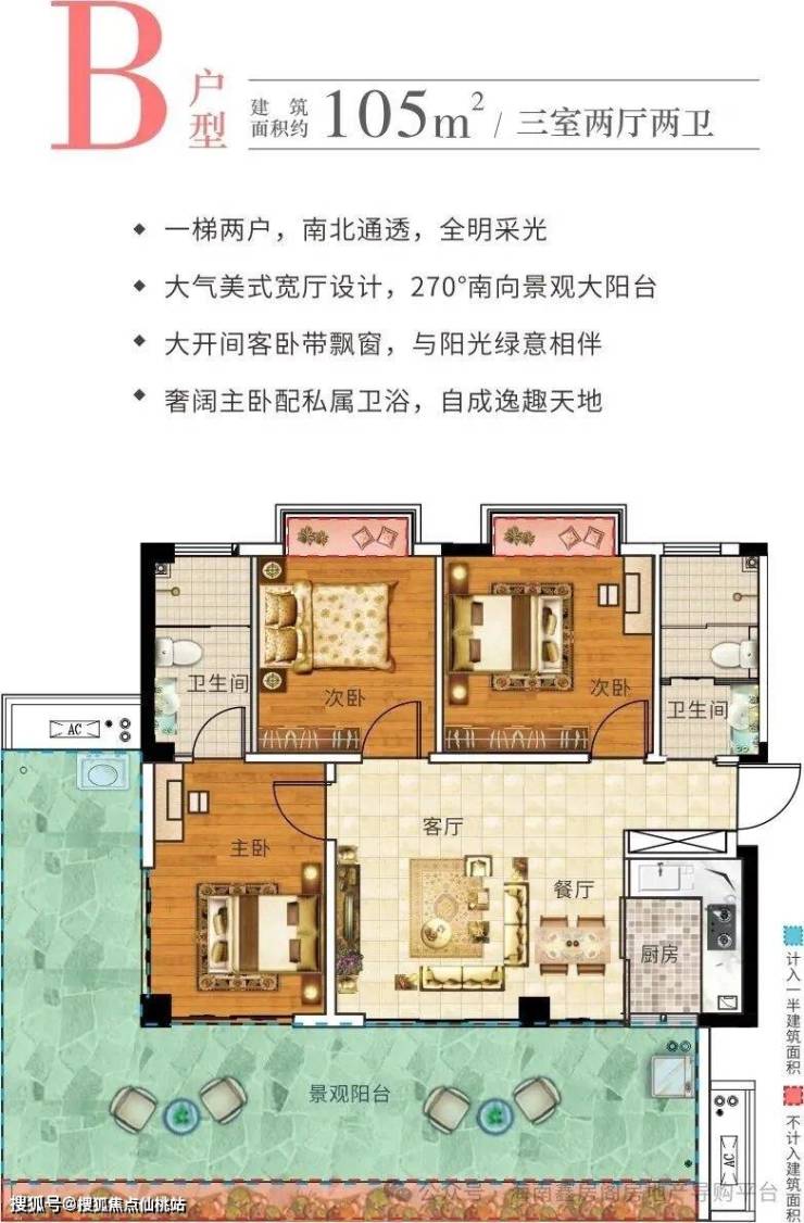 约46㎡跑道式大阳台,高赠送50%