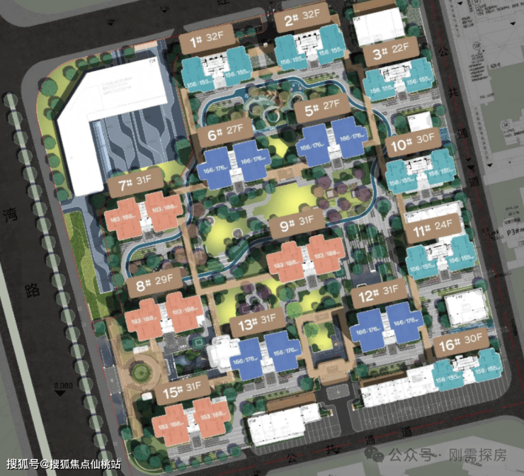 项目占地约66亩,规划14栋高层住宅,合计772套,主打建面:155、166(176)、183(188)平,个别300多平顶复,全部2T2四代宅,层高3-3.1米。