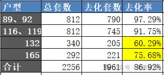 项目的89平左右的接近清盘,连廊端头同样高去化,132、165平的去化率相对低了不少。