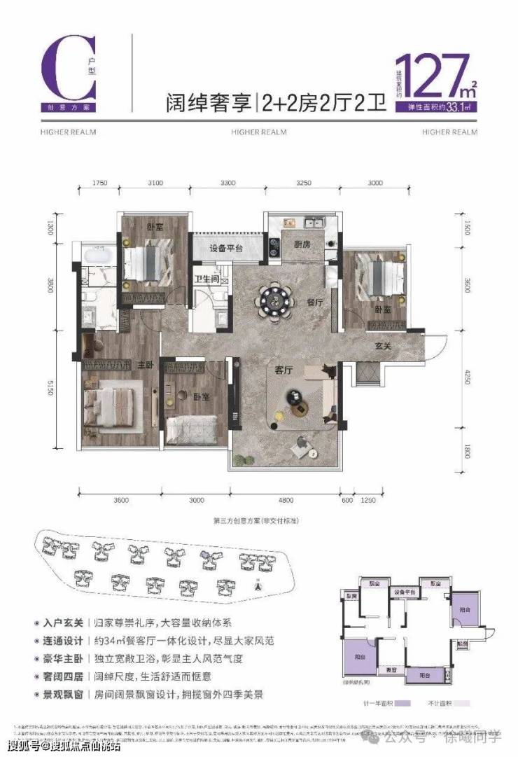 C户型—127㎡ 2+2房2厅2卫(阔绰奢享)