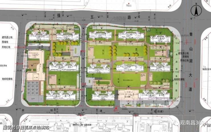 东区规划8栋18F高层,还有商业、配套位于小区南部。此外小区内部还规划多处绿地、多功能运动场所等。