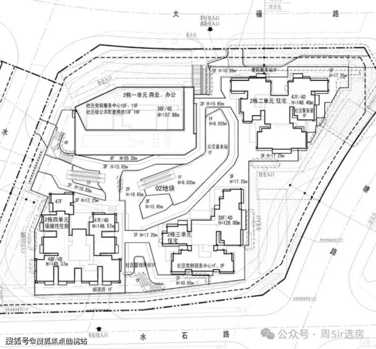 02地块比较混杂,有1栋办公楼36层,1栋保障性住宅47层,2栋住宅39-47层。