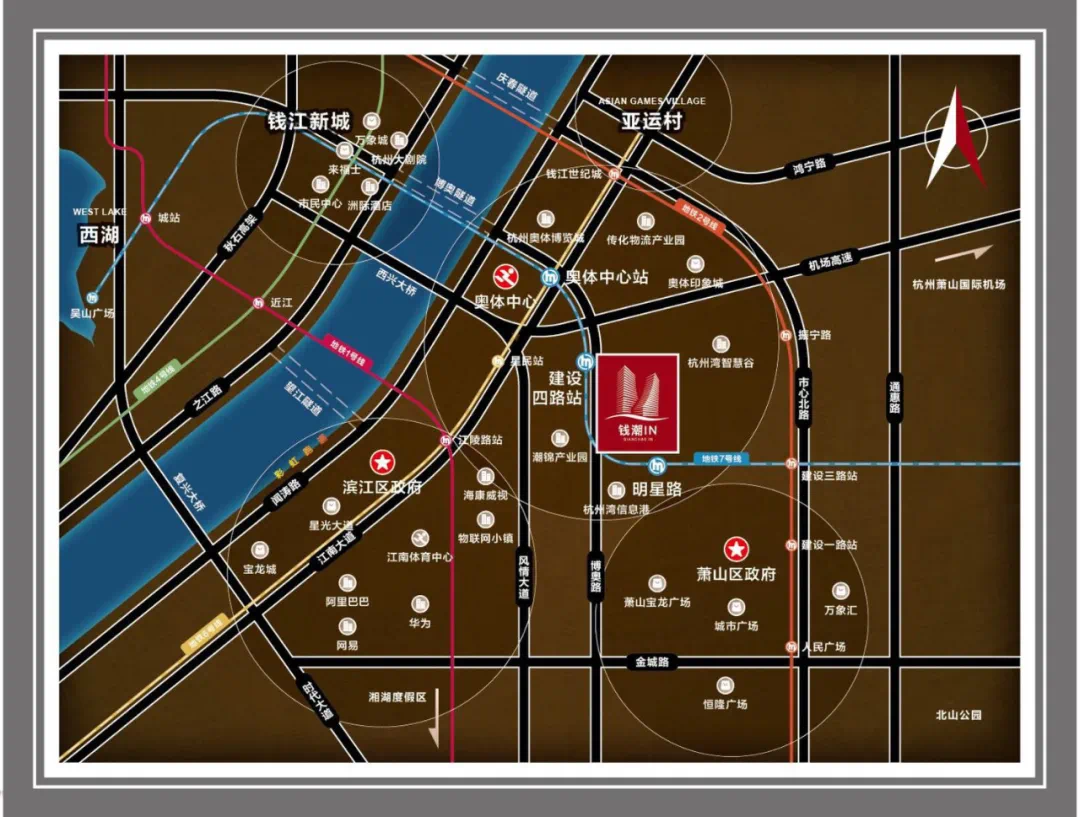 【交通配套】距离已开通7号线地铁明星路站0??距离,近邻博奥路隧道双向四车道三分钟过江,畅达全城【商业配套】自带近万方商业配套;项目出发5分钟车程到达萧山宝龙广场 奥体印象城(在建);13分钟车程到达萧山万象汇;15分钟车程到达滨江龙湖天街;五公里范围内 银泰百货、恒隆广场、加州阳光生活广场 等【医疗配套】五公里内 武警医院 浙江萧山医院