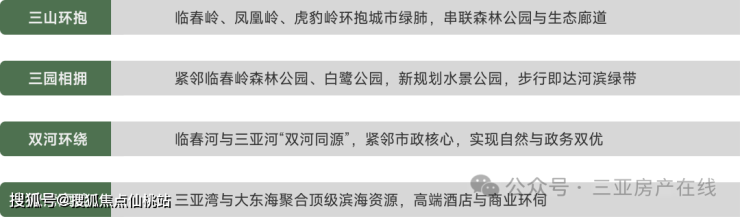 华宣·观山序落址三亚罕有的城市山海板块临春岭,叠加“城芯+3公里向湾+山麓”资源,成就价值恒久高地。临春岭之于三亚,正如长岛湾之于纽约、旧金山湾之于加州、双水湾之于悉尼,凭借天赋贵脉,成就全球精英阶层的湾居梦想地。