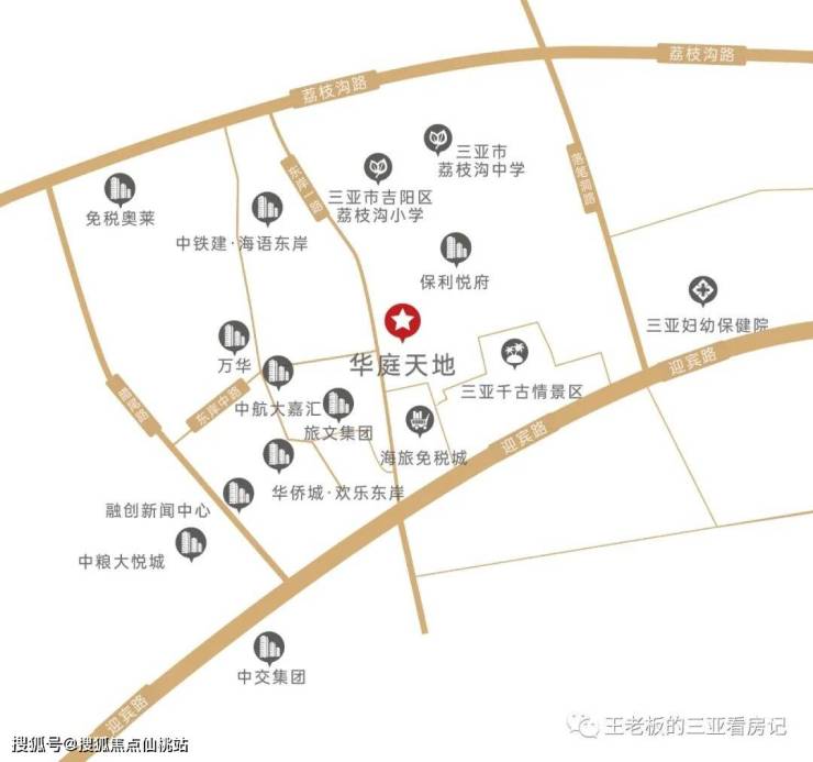 项目位于三亚市吉阳区迎宾路(海旅免税城北侧)。随着自由贸易港政策落地,在总部经济及中央商务区规划中,东岸单元作为建设大型综合消费商圈+总部经济核心区。汇集中粮、中交、保利、中航、中铁建、五矿等世界500强企业,已成为三亚城市功能上的中轴城心,凝聚着最重要的部门,昭示着三亚未来发展的方向,区域价值未来可期。