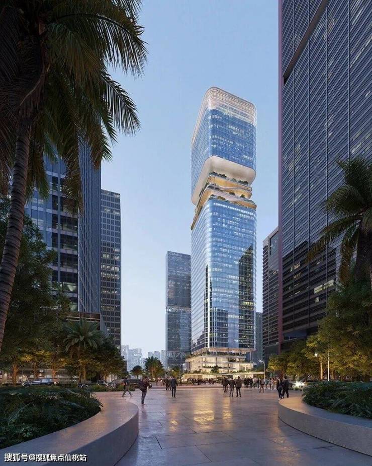 该建筑将设有一个屋顶花园,可以欣赏到前海湾的全景,并在底部设有一个分层的平台,将自然与周围的城市环境融为一体。室外露台、步行道和绿色空间是营造健康、充满活力的工作空间的关键要素。