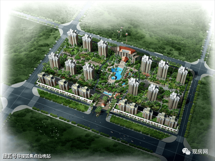小区配套:综合楼(餐饮、酒店、会议、娱乐设施)、商业街(规划)、业主食堂、1000㎡大型泳池