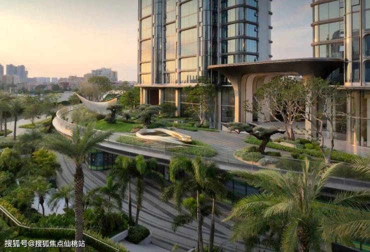 它还完全颠覆了传统豪宅的设计形态,通过系统性设计,在佛山水道边造了一座悬浮在空中的岛。