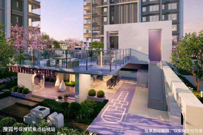 社区配套中央水院、架空层泛会所(含私宴厅、茶室、健身区等)、童玩综合体等,满足全龄生活需求,模糊室内外边界,营造“无界生活”氛围。