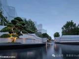 归家门仪在设计上深度融合在地文化与艺术表达,构图借鉴“密斯凡德罗”、“路易斯康”、“卡洛斯卡帕”等现代主义建筑大师的设计手法,采用几何体块穿插咬合的构成形式,搭配水幕光盒,水幕的流动光影与艺术主题雕塑,打造视觉焦点,使归家入口界面成为项目的一大标志性景观。另一侧巍然屹立的全冠移植超百年黑松,被誉为“松中之王”,代表了祥瑞长寿,也寄予了家族长久兴旺的愿望。