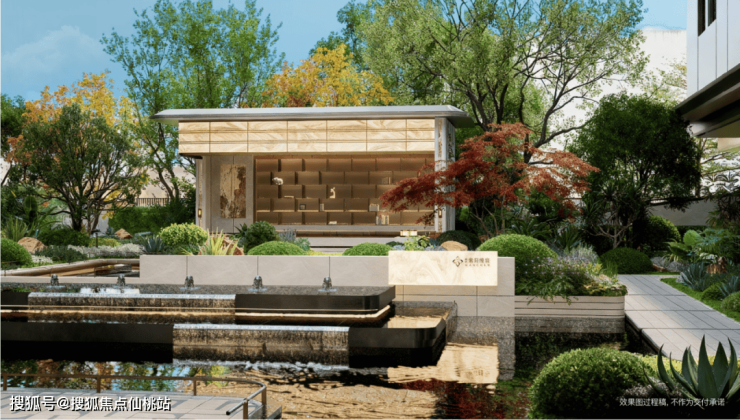 超200㎡宸辉水院会客厅,引水入园,以景围合。打破室内外界限,既是层峰社交的排场,亦是私享自然的秘境。