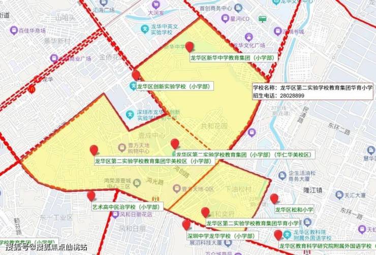 初中学区划分:深圳艺术高中民治学校初中部、龙腾学校北辰校区、龙华高级中学教育集团民治校区初中部、格致中学民治校区初中部、红山中学初中部,还有龙华实验学校初中部的大学区划分。