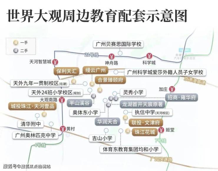 周边荟萃五大省级中学——清华附中、执信中学、天河外国语学校、广州中学、广州岭南中学(暂定名)。