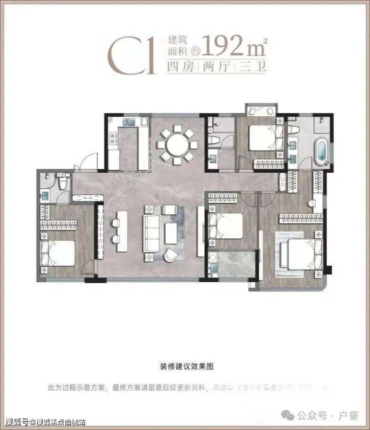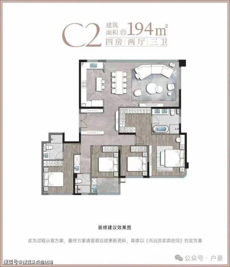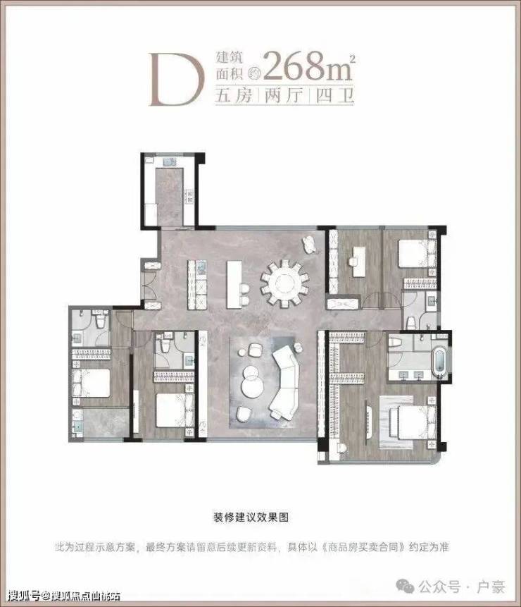 五居室 268㎡ 双套房设计,独立家政间,270°观景阳台,高端改善型家庭;