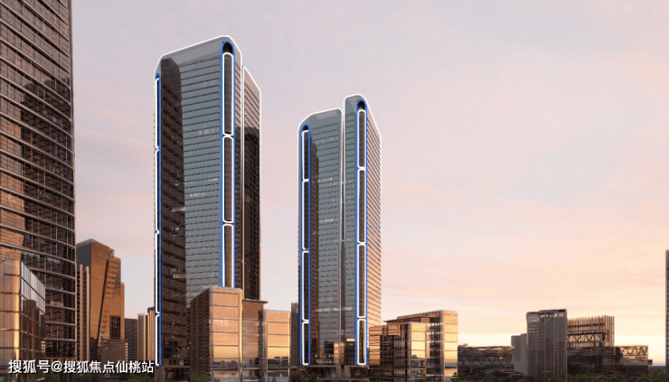首期主要由两座分别楼高50层,总建筑高度210.3米以及楼高48层,总建筑高度202.5米的商业大楼组成,另在江边有两座矮座总部办公大楼。