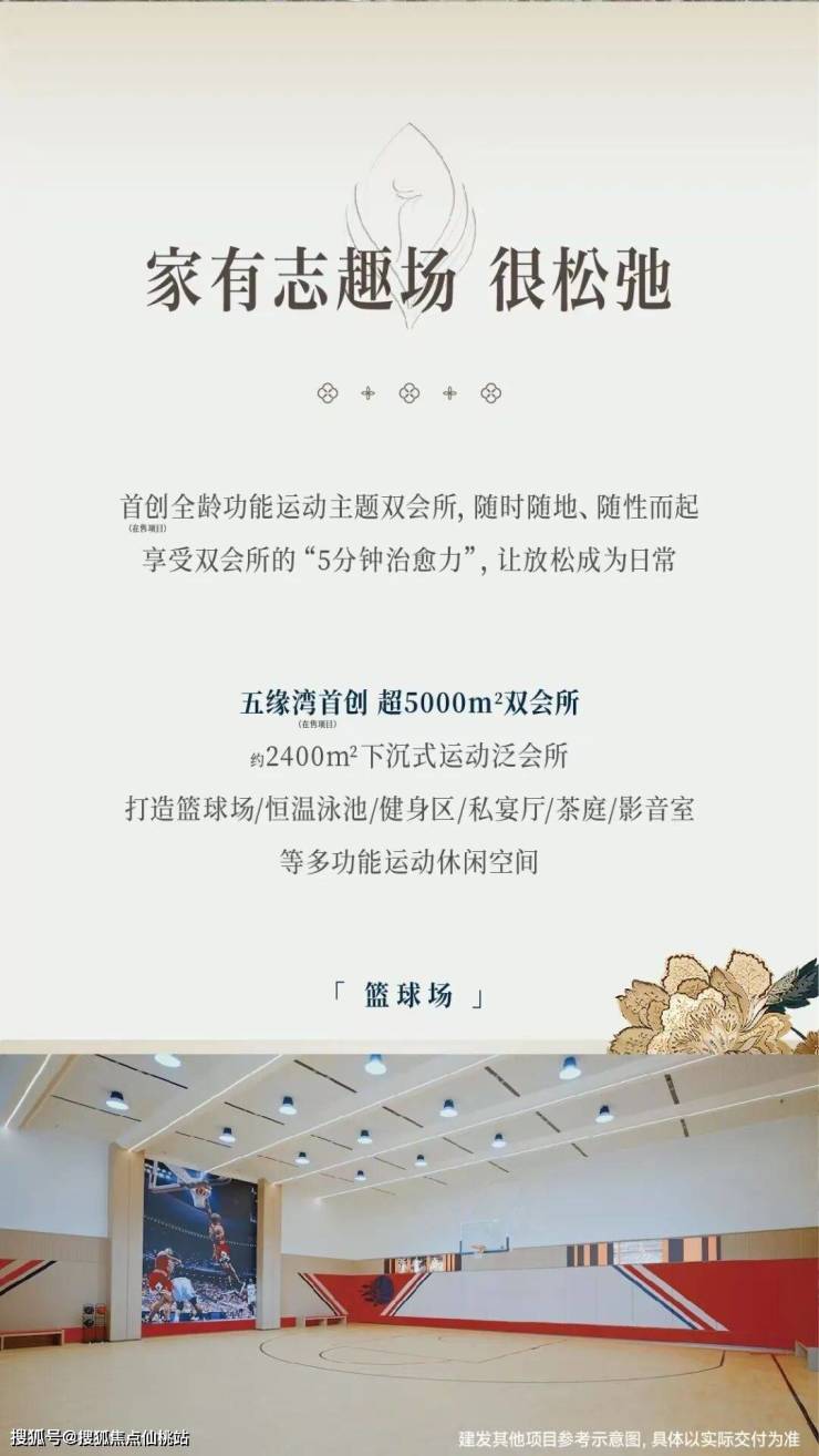 2400㎡地下会所,包含超越五星级酒店的岛内最大私宴厅、标准25m四泳道恒温,可观赏瀑布园林的泳池,五缘湾首个室内国标半场采光篮球场。