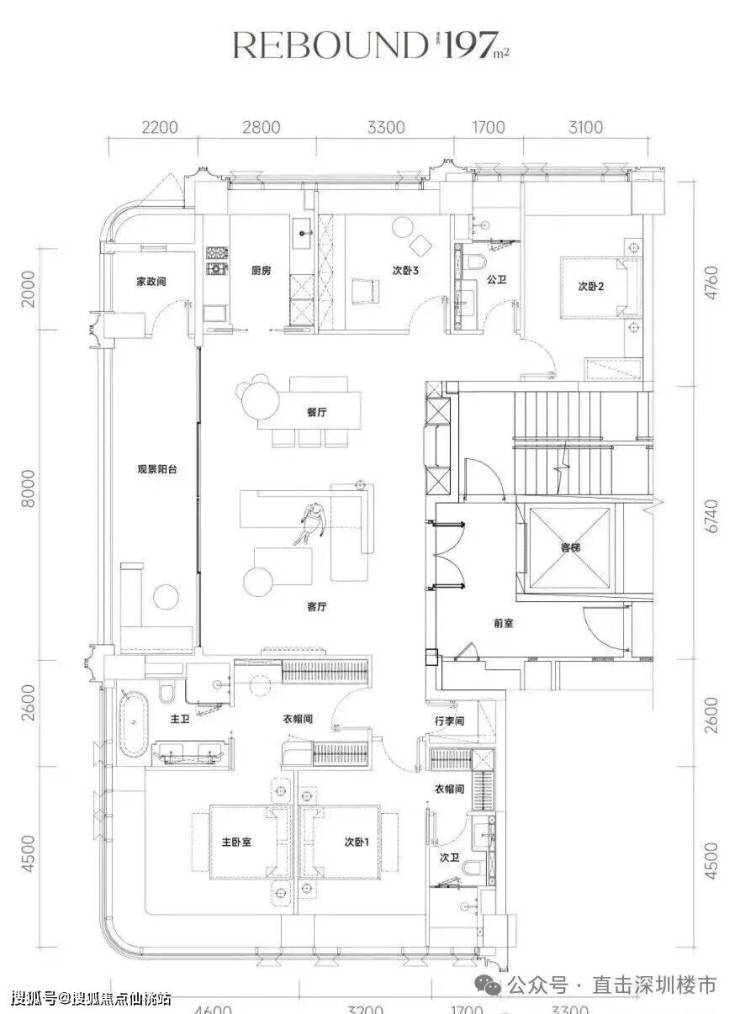 主力户型为186-247㎡,主打T2/T3楼型
