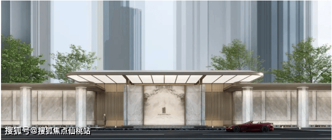 项目打造融合星级酒店形制的归家礼序,包括高门大院-名贵迎客松-悬瀑超级画面-近500㎡水韵空间。