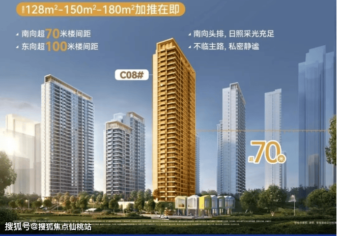 南向超70米楼间距,东向超100米楼间距;