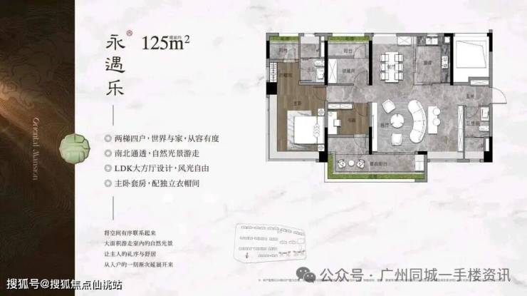 125平建面的户型也是类似的理念,LDK和减少剪力墙的设计,使大方厅的尺度得到了最大的解放,空间感远远超过了大部分同类户型。
