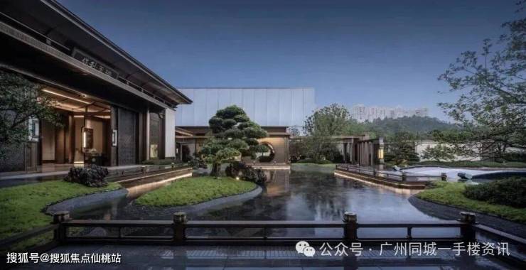 项目打造约6.8万㎡中式园林。“礼道-见松-步水-游廊-归堂”每一平米,都是对品质生活的雕琢