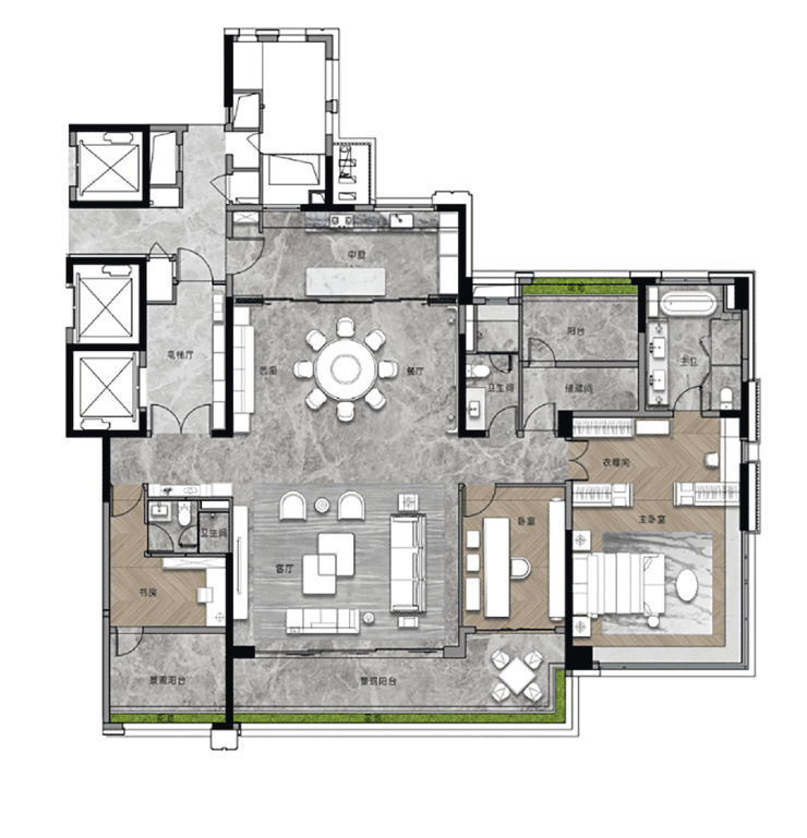 我们再来看看此次加推的268平的大面积户型,作为项目的旗舰,暗藏着哪些巧妙的设计?