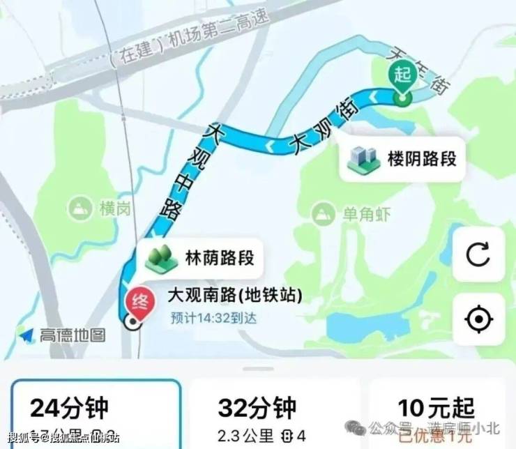 自驾的话,可通过大观街路直接接驳大观中路,周边还有沈海高速、环城高速和在建的机场第二高速等干线,自驾出行还算方便,不过高峰期大观路、合景路车流较多,经常会堵车