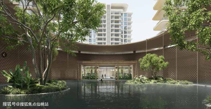 信步示范区内部,犹如徜徉一片三亚市心的静谧绿洲。来自曼谷的景观事务所TROP借鉴海内外高奢度假酒店形制,以“一心双庭”设计融合热带植被水景,带来丰富且宁静的度假氛围。