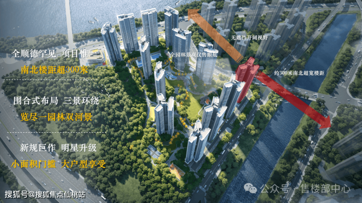 德胜天汇凭借围合式设计将南北楼间距拉到最远约260米,意味着视野能覆盖整个中央园林,顺德市场独一份。