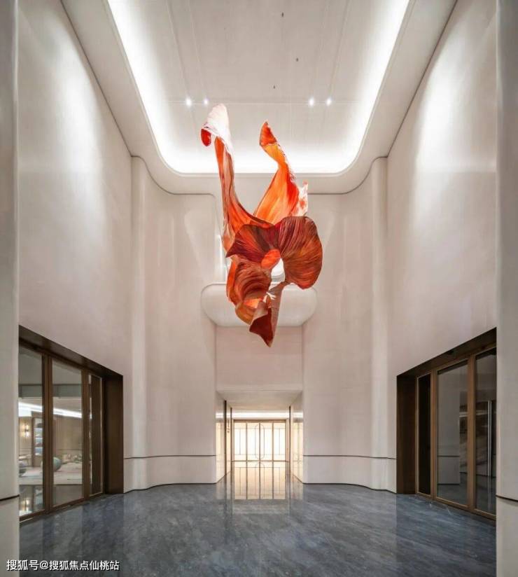 此时你一转身,又能步入如剧院包厢般的观景平台,俯瞰大堂的花瓣艺术装置,仪式感再度升华。